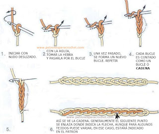 * Ahora que tienes el nudo hecho, el siguiente paso es aprender a hacer la cadeneta. Sigue los pasos de izquierda a derecha.
